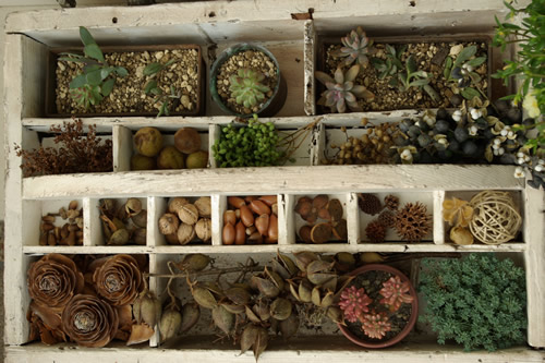 最近の当店、植物好きの方が多くボクも感化され店内には木の実やドライがいっぱい